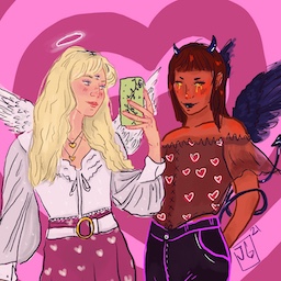 Original illustration created for Valentine's Day series, practice for character design and depicting clothing.