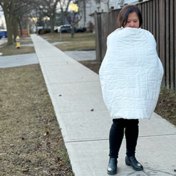 Cherie is a multi-media storyteller who works in textiles, crafting material, and found objects. She uses techniques like sewing, quilting, embroidery and beading to create works that intersect painting, textiles, and sculpture. As a second-generation Chinese Canadian, her work focuses on motherhood and self, materiality, and mental health. Two recent residencies in Oaxaca, Mexico and Chiang Mai, Thailand continue to influence her work. Cherie’s work has been featured in over 20 group shows. Her achievements have been recognized in the form of merit scholarships and by the Government of Canada. In September 2025, Cherie will begin an MA in Textiles at the Royal College of Art (UK).