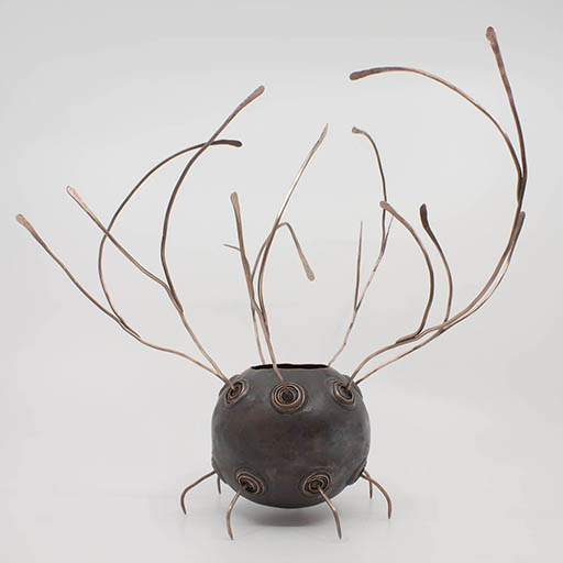 “Three stages to summarize change. To embrace movement allows us to understand nature within and outside ourselves. Only experiencing one stage at a time, but together they show progression. We all have this in common, giving faith over to the gods.First, born fleshy and vulnerable, many limbs act to protect and defend. Survival beyond this stage is necessary for development but not guaranteed.Second, the creation of a cocoon and the shedding away of all the skin that once provided blood flow for the growth into maturity. The beginning of movement from one vessel to another.Third, inhabiting the shell of the predecessor to provide the shelter and protection needed to grow to full maturity. A place to live and eventually die.I dedicate this work to those who helped me along the way, who taught me, hurt me, and remained with me.”