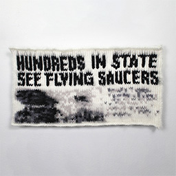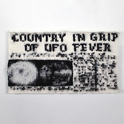 “Aura, Anomalies explores America's enduring infatuation with paranormal phenomena. The project explores how the otherworldly has permeated American culture, appearing in folklore, pop culture, and fringe media from the past into the present. Brushed mohair's inherent material ability to obscure, blur, and abstract mirrors the visual language of paranormal evidence, such as grainy photographs and fragmented eyewitness accounts. The material reinforces this phenomenon's elusive and ambiguous nature, highlighting the tension between belief and skepticism, paranoia and sensationalism. The images are duplicate stitched by hand as an act of reinterpreting visual research through analogue textile techniques. The result is an installation that functions like a visual archive, remaining open to interpretation. My work invites viewers to reflect on their own beliefs, positioning the paranormal as both a cultural fixation and a lens into human curiosity about the unknown.”