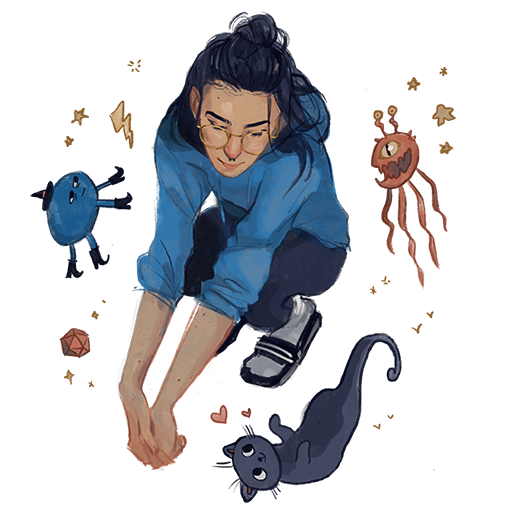 Greetings! My name is Christine/Chris Kilfoil (she/them). I’m a Canadian 2D artist and freelance illustrator based in Toronto, ON. I love to work with people to come up with unique (read: geeky) concepts and characters. I’m greatly influenced by themes of horror, sci-fi, fantasy, and nostalgia. In my spare time, I’m usually gaming with my friends, whether that’s on a screen or a table top. Thanks for visiting my page!