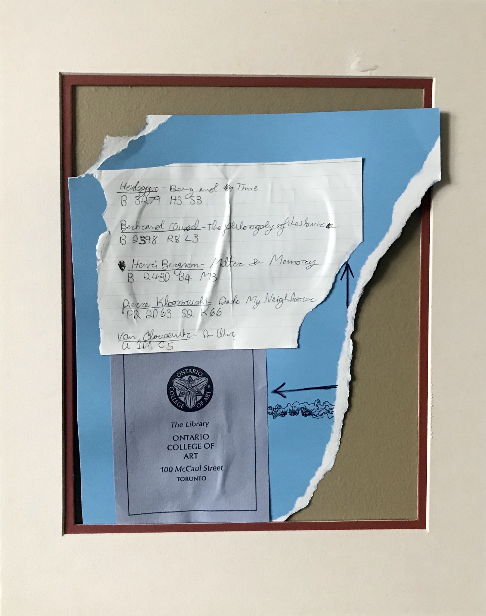 B 3279 H3 S3 (https://ocad.ipac.sirsidynix.net/ipac20/ipac.jsp?session=16Y8865O531R9.266&profile=otca&source=~!horizon&view=subscriptionsummary&uri=full=3100001~!83121~!0&ri=4&aspect=subtab24&menu=search&ipp=20&spp=20&staffonly=&term=heidegger&index=.AW&uindex=&aspect=subtab24&menu=search&ri=4)B 2398 R8 L3 (https://ocad.ipac.sirsidynix.net/ipac20/ipac.jsp?session=16Y8865O531R9.266&profile=otca&source=~!horizon&view=subscriptionsummary&uri=full=3100001~!46409~!4&ri=7&aspect=subtab24&menu=search&ipp=20&spp=20&staffonly=&term=bertrand+russell&index=.AW&uindex=&aspect=subtab24&menu=search&ri=7)B 2430 B4 M3 (https://ocad.ipac.sirsidynix.net/ipac20/ipac.jsp?session=16Y8865O531R9.266&profile=otca&source=~!horizon&view=subscriptionsummary&uri=full=3100001~!80014~!1&ri=9&aspect=subtab24&menu=search&ipp=20&spp=20&staffonly=&term=henri+bergson&index=.AW&uindex=&aspect=subtab24&menu=search&ri=9)PQ 2063 S2 K66 (https://ocad.ipac.sirsidynix.net/ipac20/ipac.jsp?session=16Y8865O531R9.266&profile=otca&source=~!horizon&view=subscriptionsummary&uri=full=3100001~!83299~!0&ri=12&aspect=subtab24&menu=search&ipp=20&spp=20&staffonly=&term=pierre+klossowski&index=.AW&uindex=&aspect=subtab24&menu=search&ri=12)U 101 C5 (https://ocad.ipac.sirsidynix.net/ipac20/ipac.jsp?session=16Y8865O531R9.266&menu=search&aspect=subtab24&npp=10&ipp=20&spp=20&profile=otca&ri=13&source=%7E%21horizon&index=.AW&term=carl+von+clausewitz&x=0&y=0&aspect=subtab24)