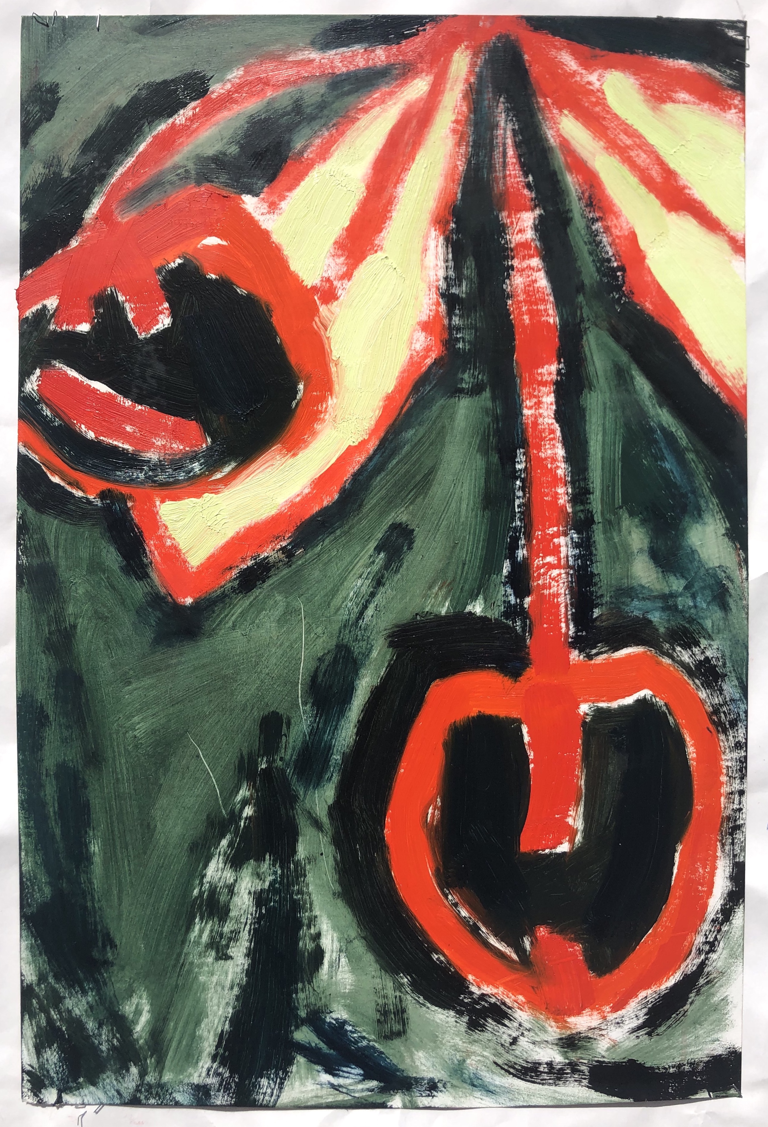 “Sour cherries are one of the most cultivated fruit in Poland, having cultural significance to me as my mother is Polish. When I was young, my mom would take me to the farmers market in Hamilton where an old German lady would place cherries around my ears, like they do in Polish magazines. These cherries through repetition become emotionally charged and further their significance to me as an abstracted representation of family relationships and a longing to belong. ”