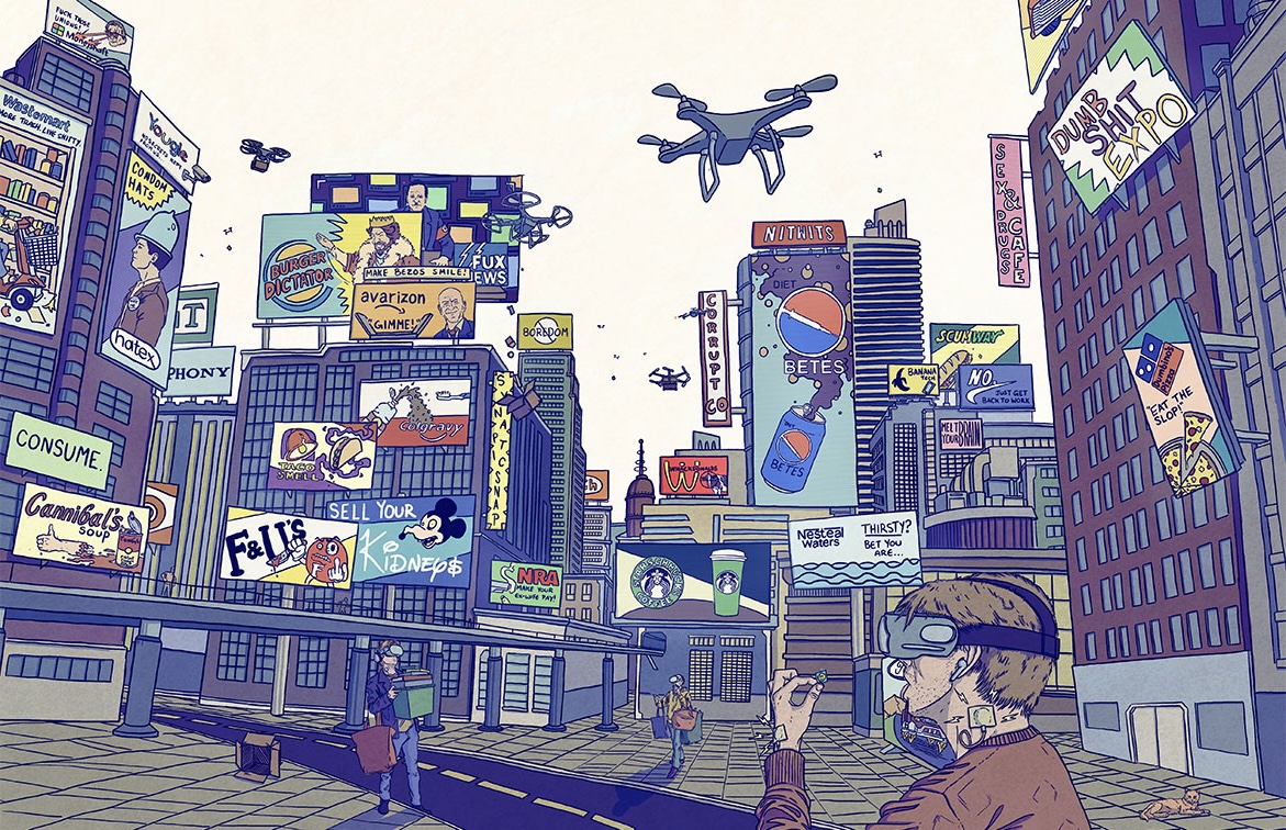 This Digital Illustration Critiques Humanities Overindulgences and Need to Be Entertained/Stimulated...