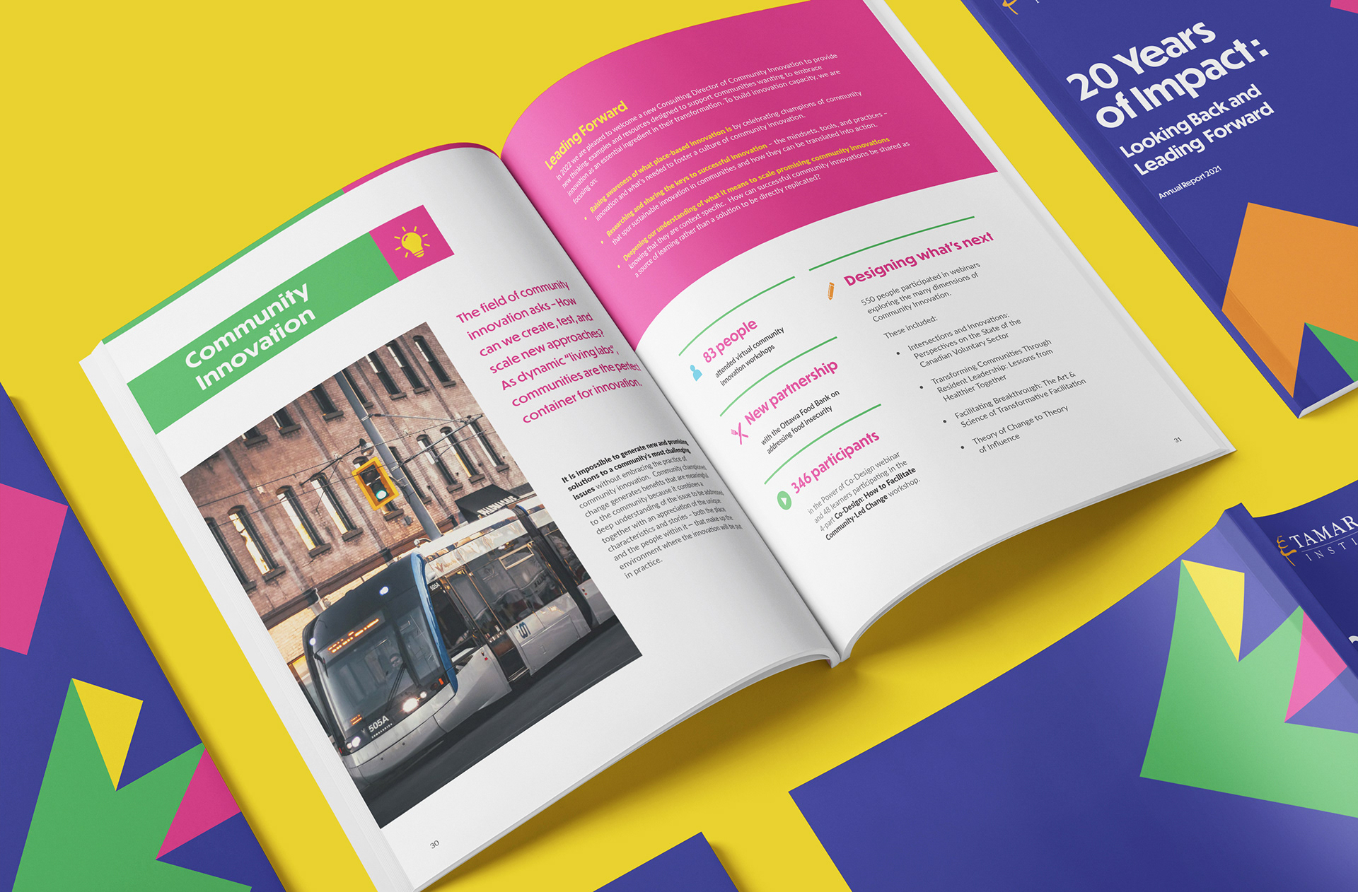 The Brief: Create the 20th anniversary edition of the organization's annual report. The Tamarack Institute works to create lasting community change by consulting and educating leaders in the public and private sector.