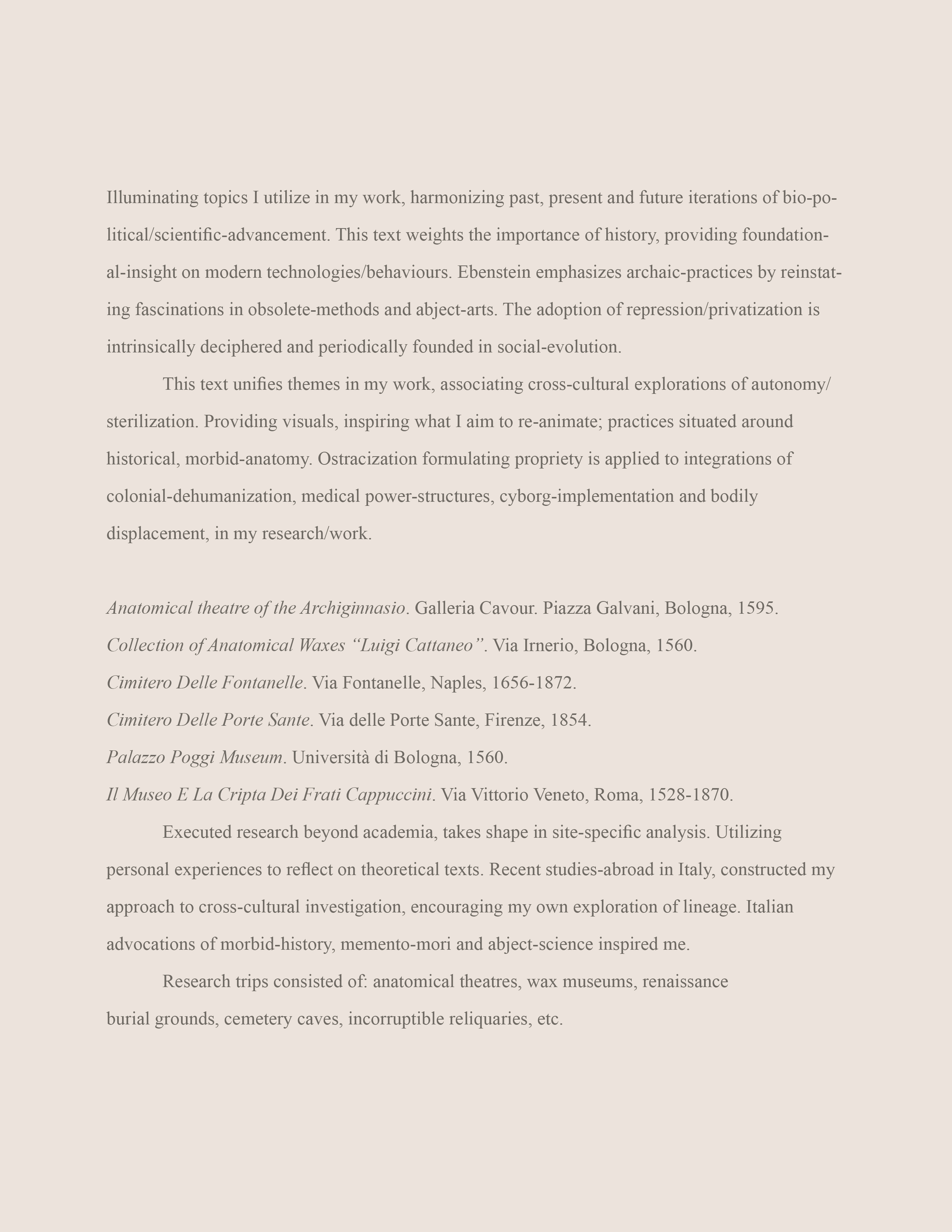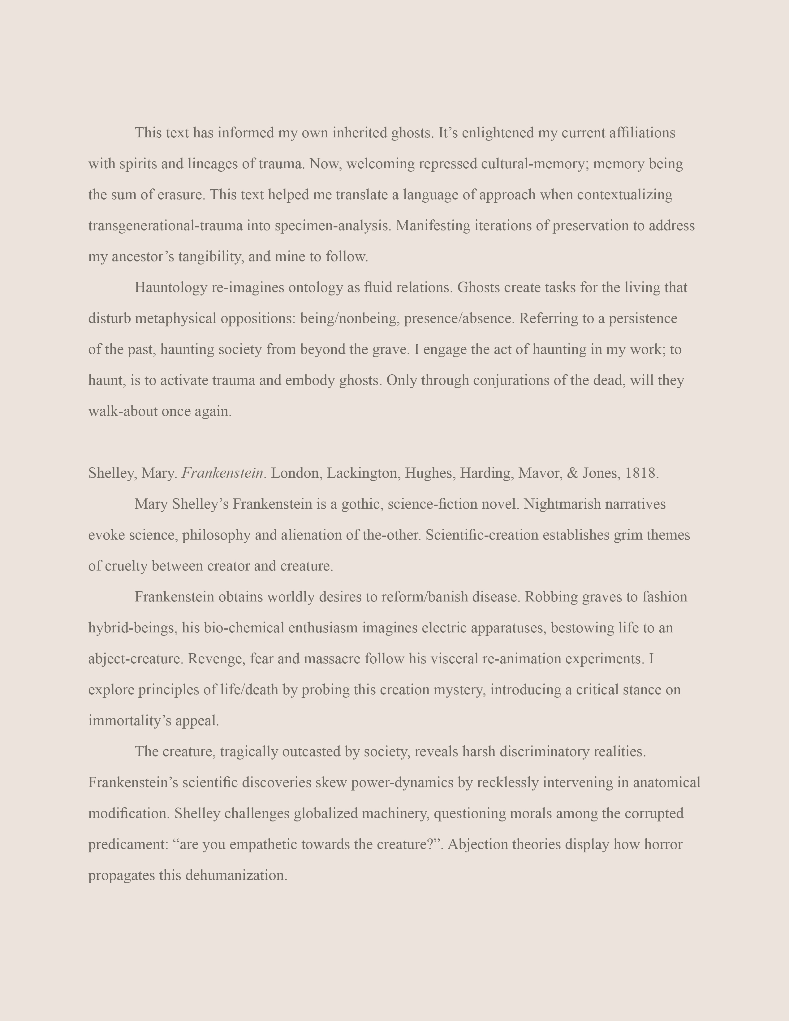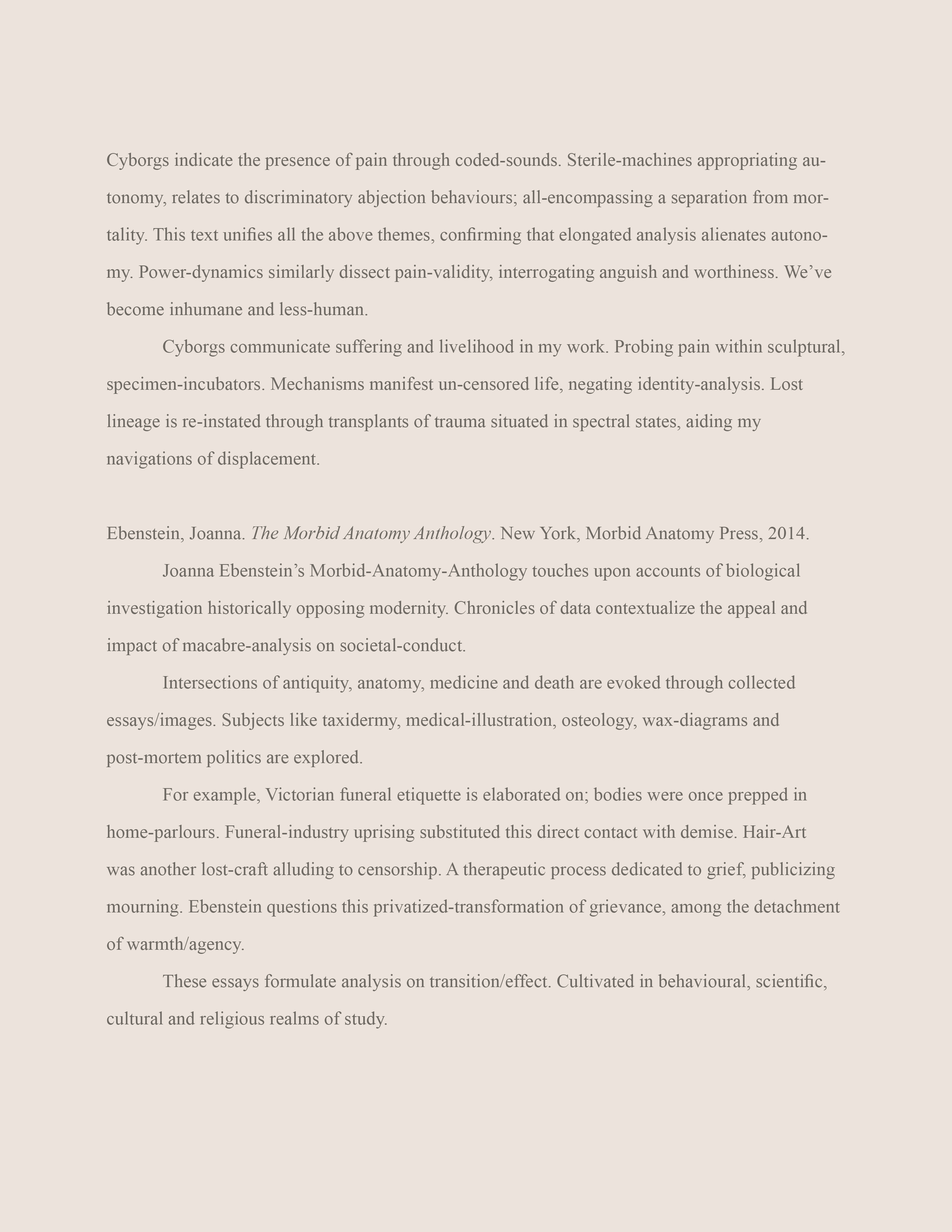 Statements, Text-based pages and Essays: isolated excerpts from the Warm Bodies, Ghostly Specimens, Stoic Machines, digital e-book & printed textbook. To read through more text, chapters and contents, please click on the attached links.