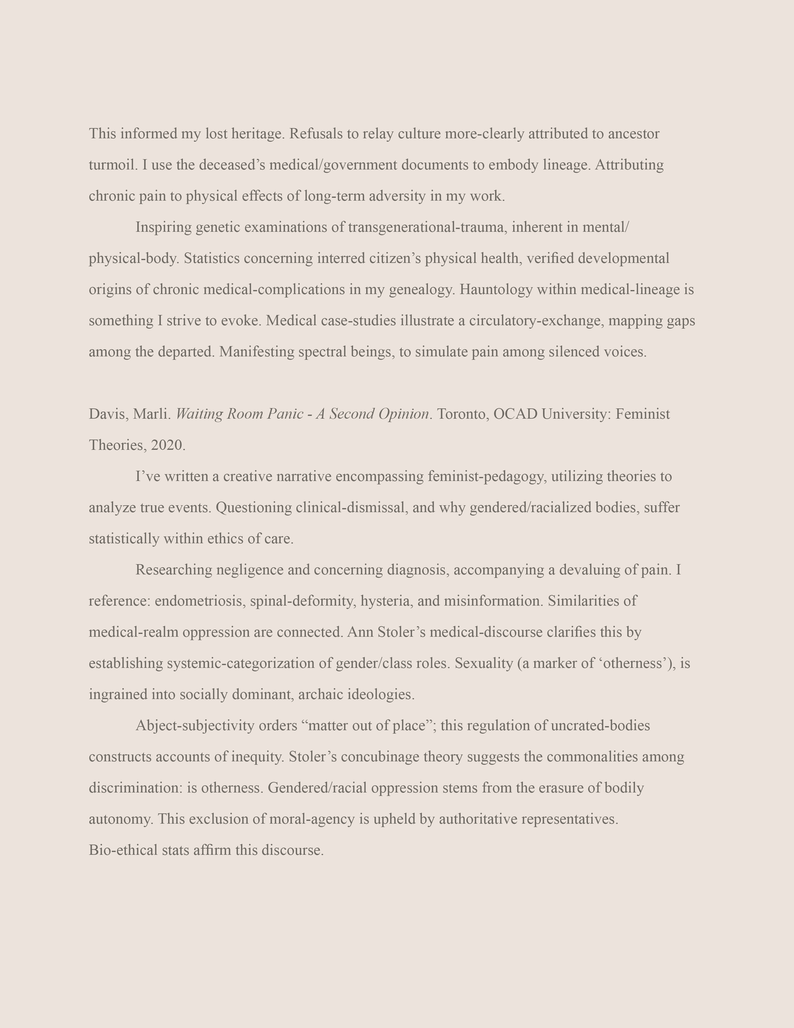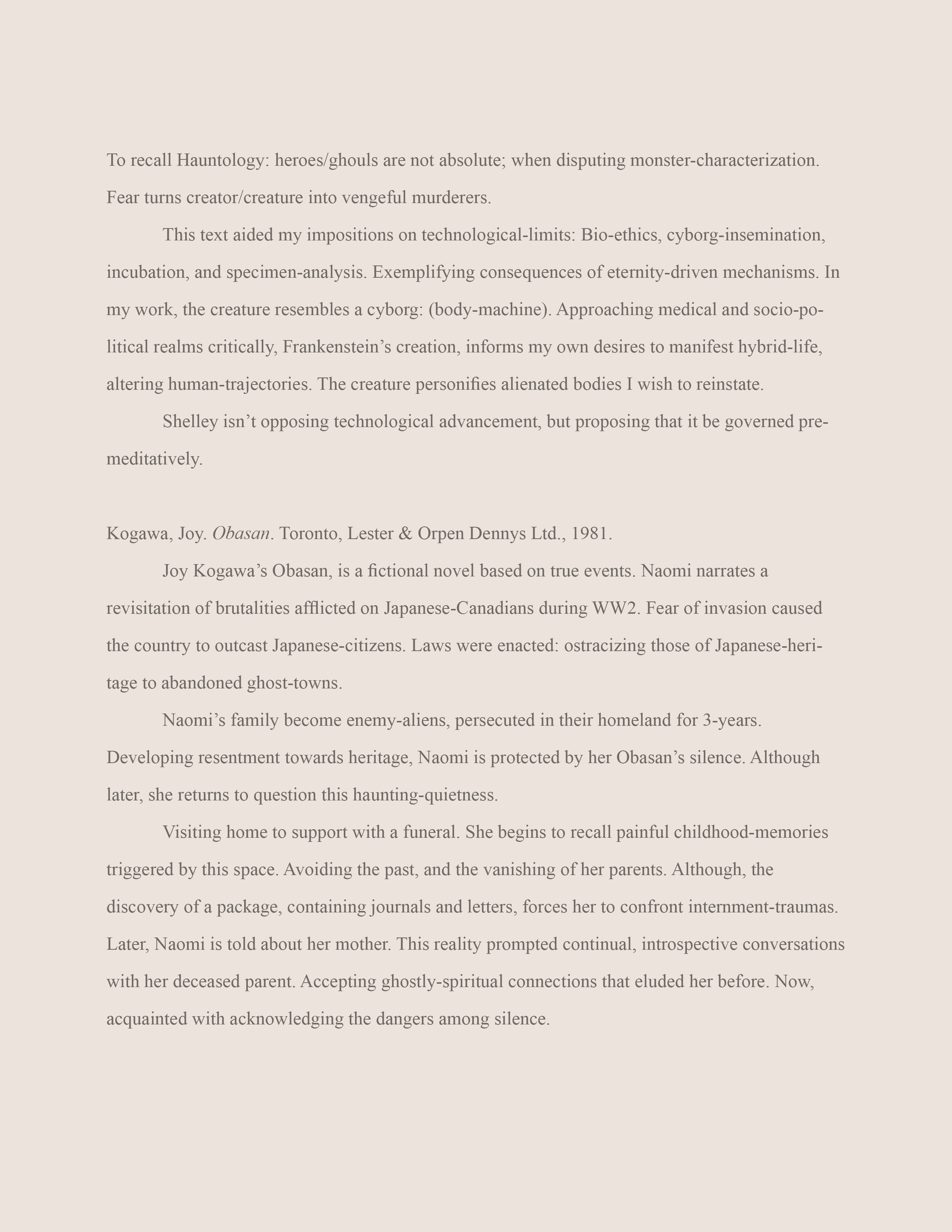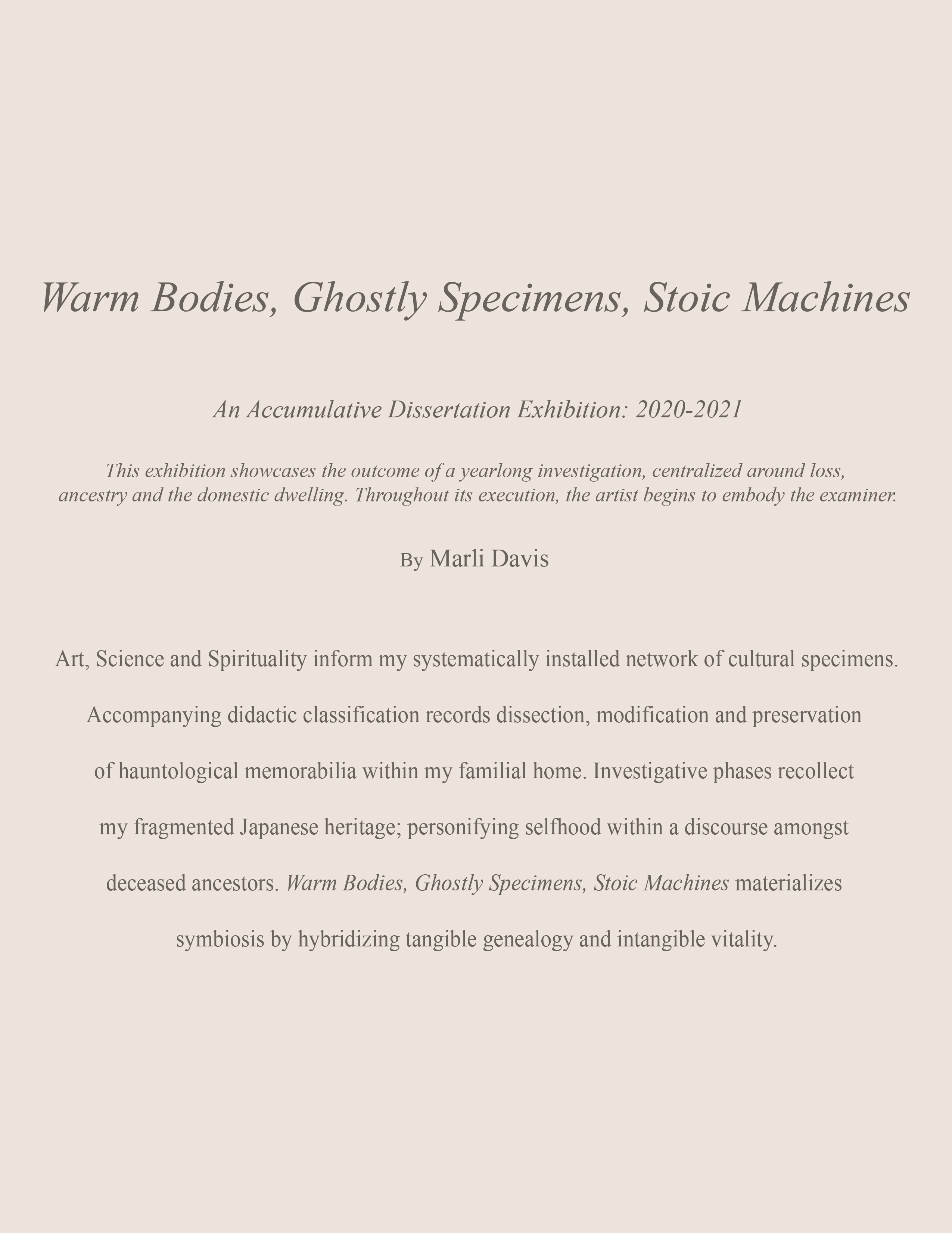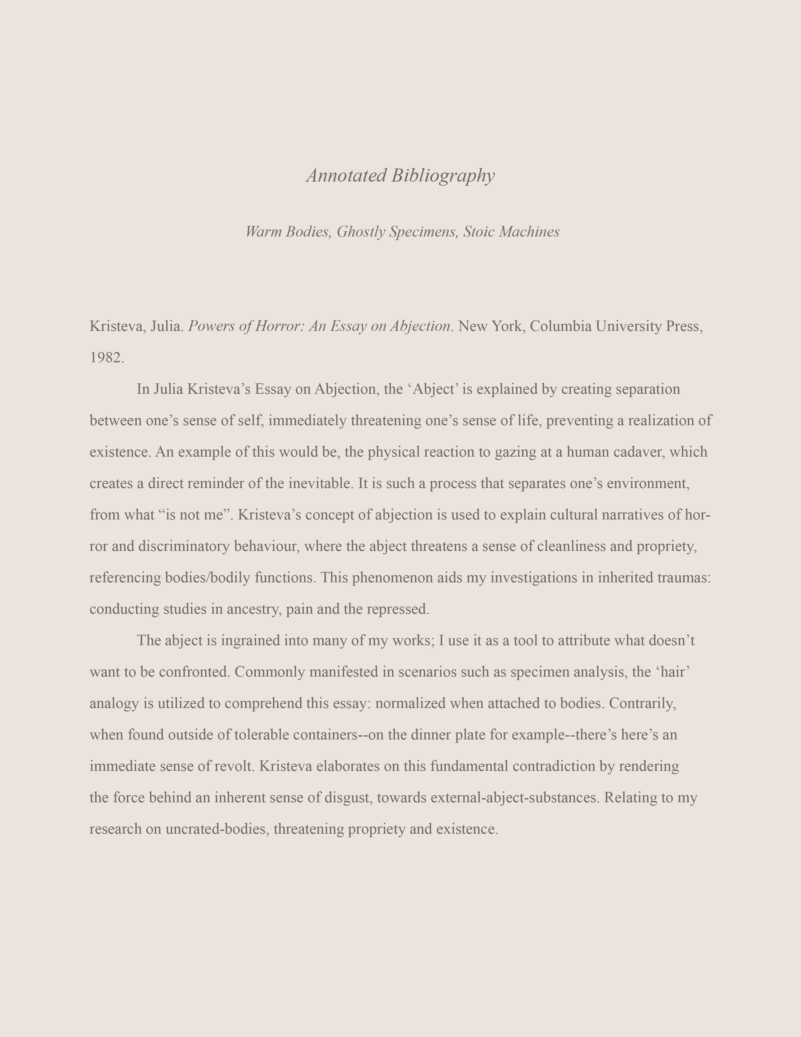 Statements, Text-based pages and Essays: isolated excerpts from the Warm Bodies, Ghostly Specimens, Stoic Machines, digital e-book & printed textbook. To read through more text, chapters and contents, please click on the attached links.