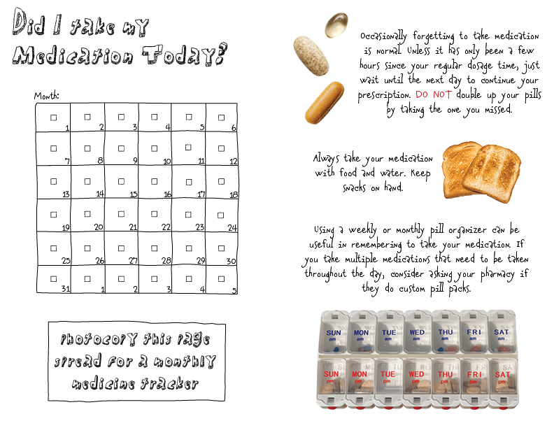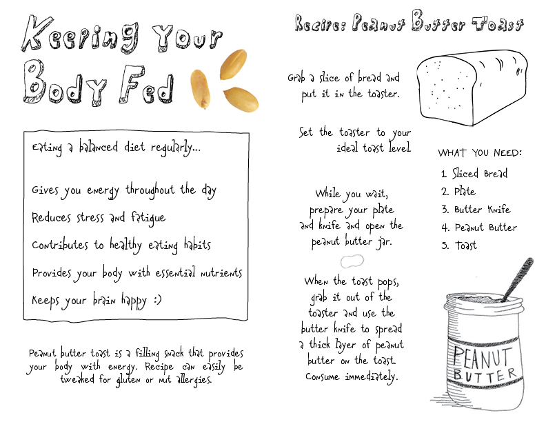 An exploration into graphic design through the lens of taking medicine. A pamphlet acting as a calendar and reminder to take your medications, designed around my comfort food, peanut butter toast.