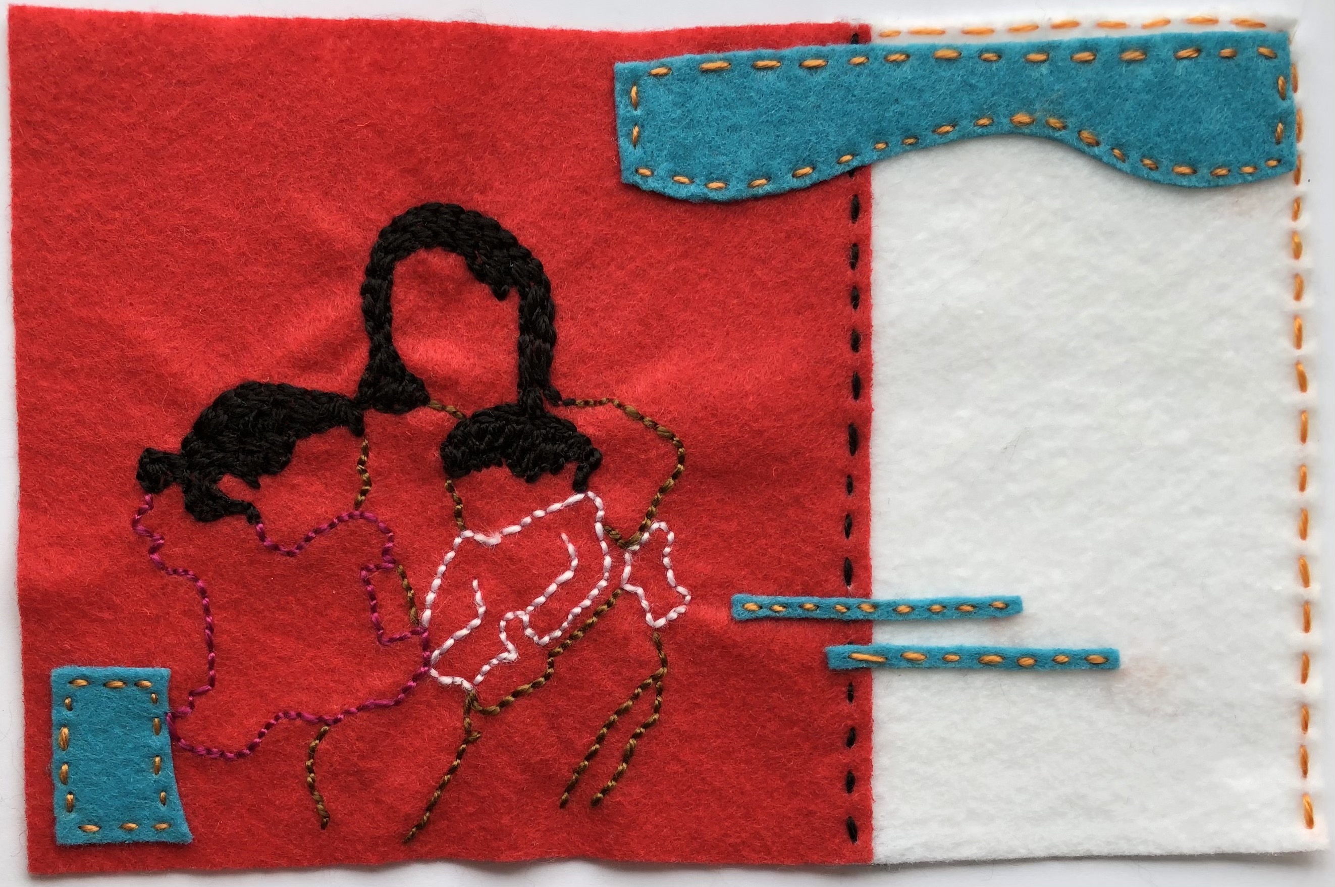 Using yarn and felt, I have recreated various childhood photos to explore notions of family relationships, looking in particular, at the close dynamic that exists between mothers and their children. Delicate and simple needlework draws attention to the figures, highlighting the intimacy and care that is inherent in the interactions between them.