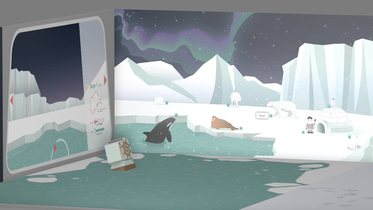 Save the Arctic is an immersive and informative exhibit at the Royal Ontario Museum, designed to educate visitors about the impact of global warming on the Arctic region. The exhibit features interactive displays and visual aids to help visitors comprehend the information presented.The exhibition targets children who will face the real effects of global warming as well as adults who will play an important role in educating the next generation. The exhibit aims to raise awareness about the current situation of the Arctic and to encourage visitors to take action to protect this vulnerable region.
