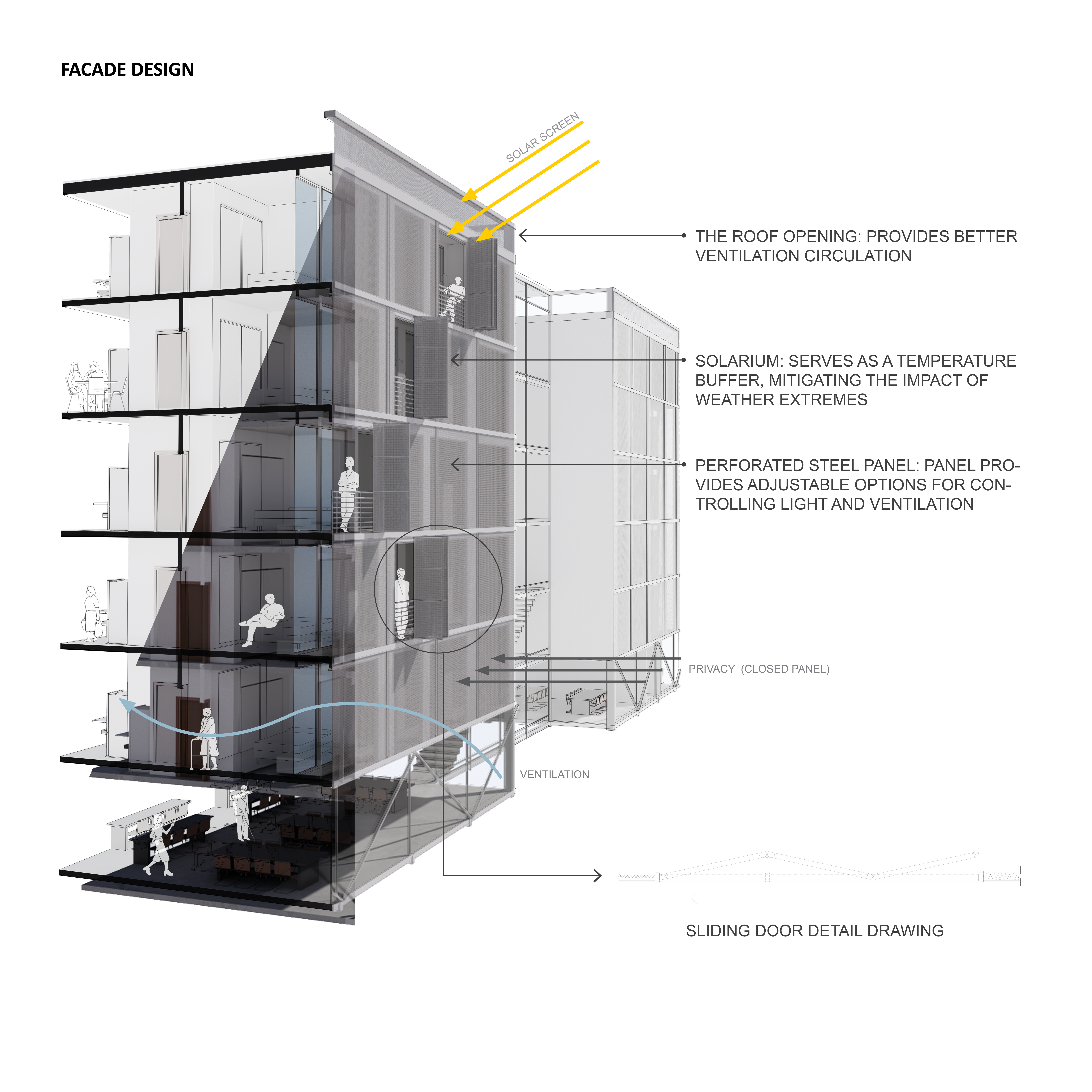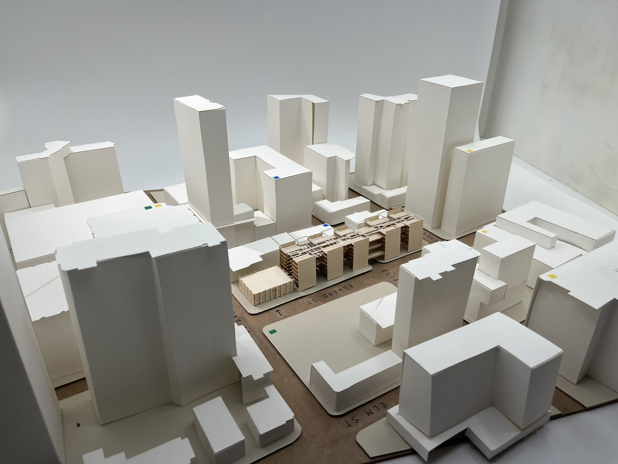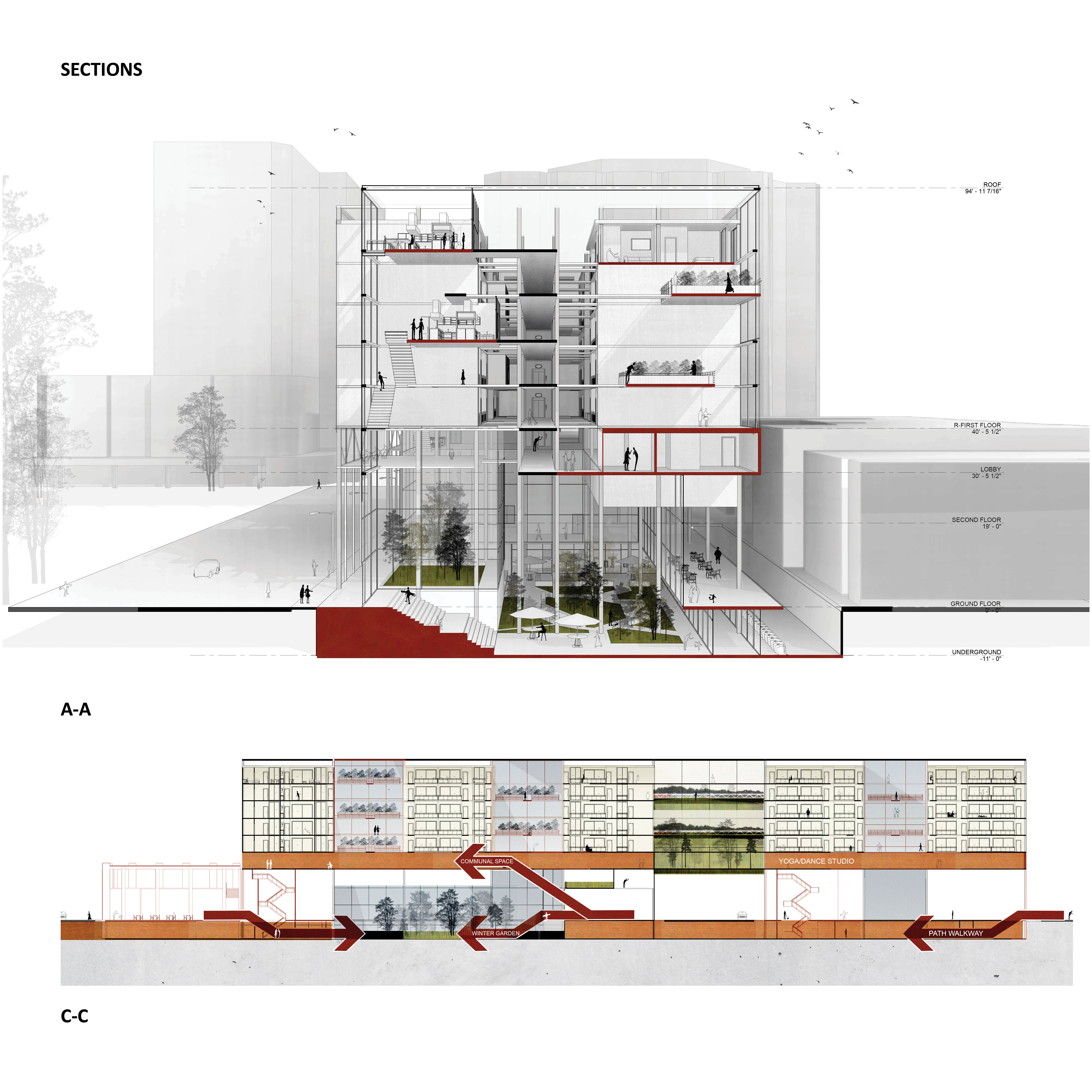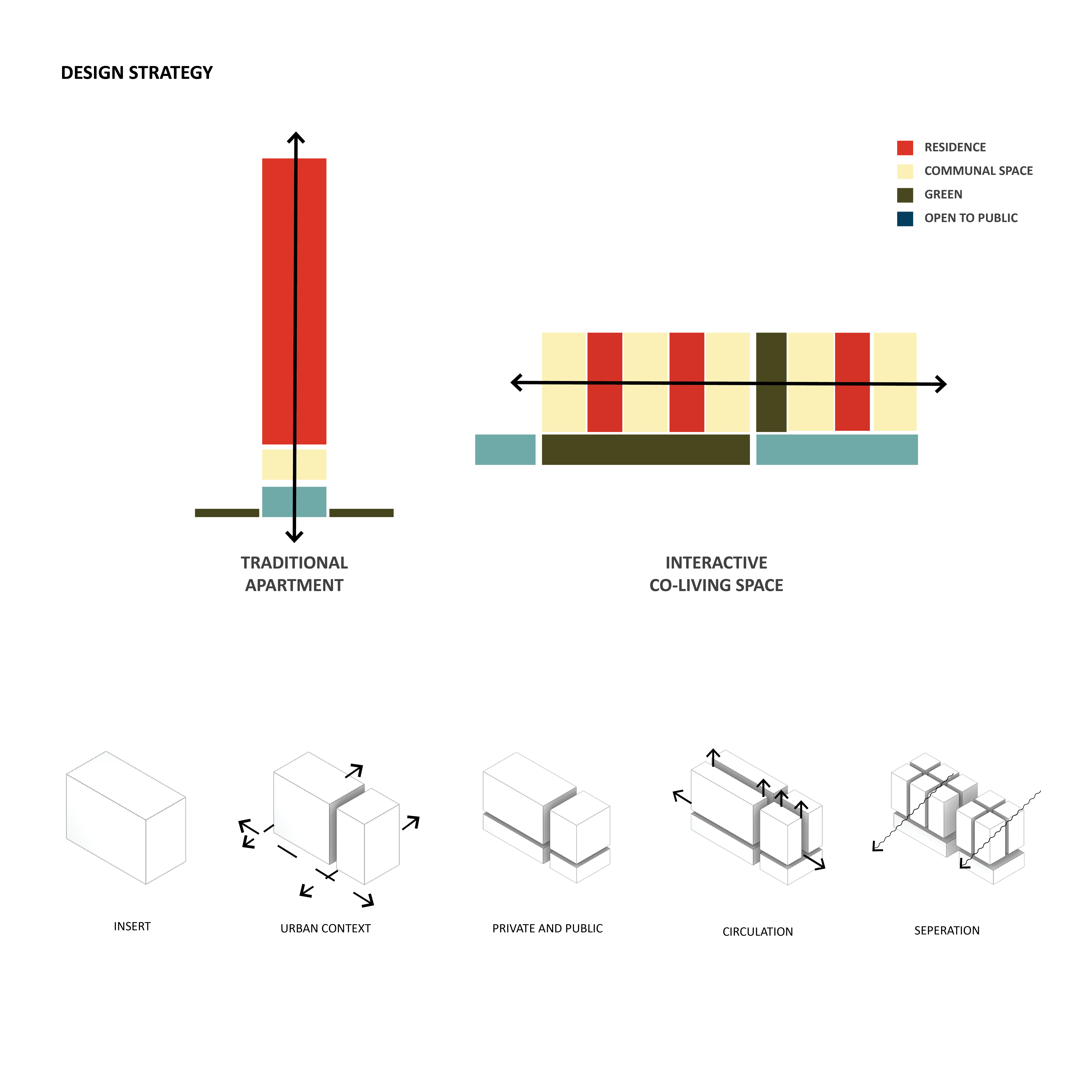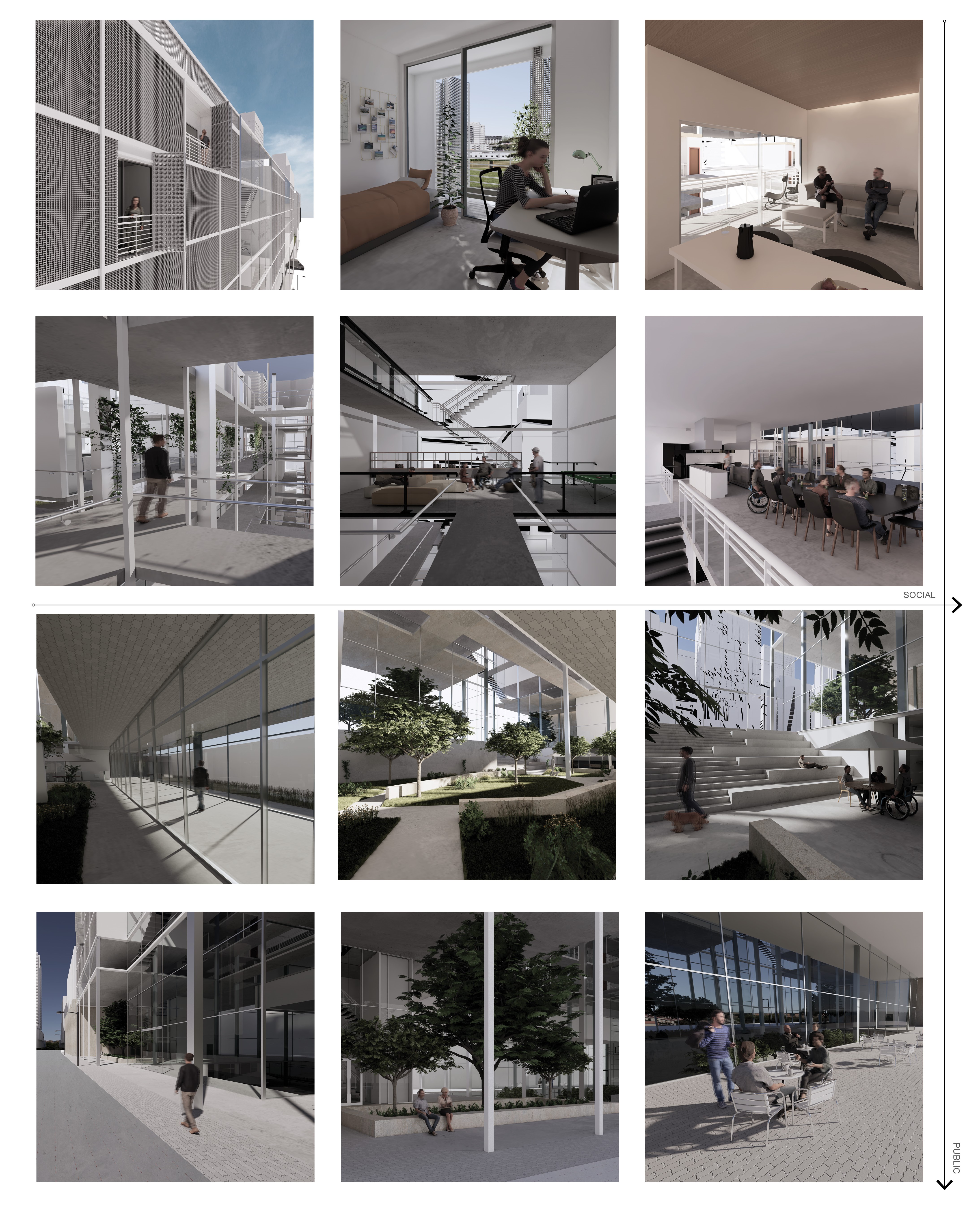 “As human lifespans extend globally, the challenge of aging has become increasingly apparent. Nowhere is this more evident than in Toronto, Canada, where rapid social changes among diverse cultural groups have intensified intergenerational conflicts and deepened the isolation of older adults. Contemporary societal norms often lead to the separation of different age groups into distinct spaces, driven primarily by functional considerations. This trend extends beyond residential facilities, permeating cultural, educational, and community spaces, inadvertently exacerbating tensions between generations.In response to this pressing issue, this architecture practice is pioneering a solution: transforming the historic Toronto Old Coach Bus Terminal into a multi-generational co-living residence. This architectural initiative seeks to revitalize the diminishing importance of intergenerational exchange. Its core objective is to elevate the quality of living environment for the elderly by addressing the pressing housing and educational needs of the younger generation, who find themselves at opposite ends of the life cycle.”