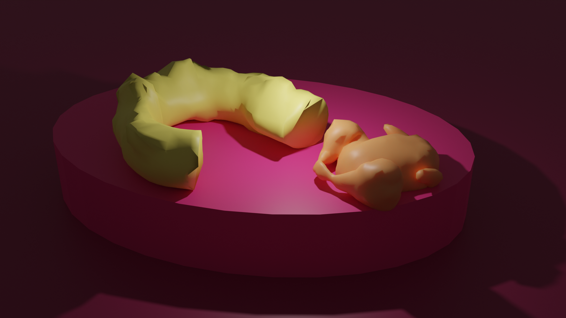 ObjectiveUsing an Old Dutch Popcorn Twist and rotisserie chicken, draw from different angles and develop it in 3D softwares. Software used: Meshmixer, Regard 3d, and BlenderI really wanted to have fun and create something adorable and silly. These are scenes of what the popcorn and rotisserie chicken have been doing together!