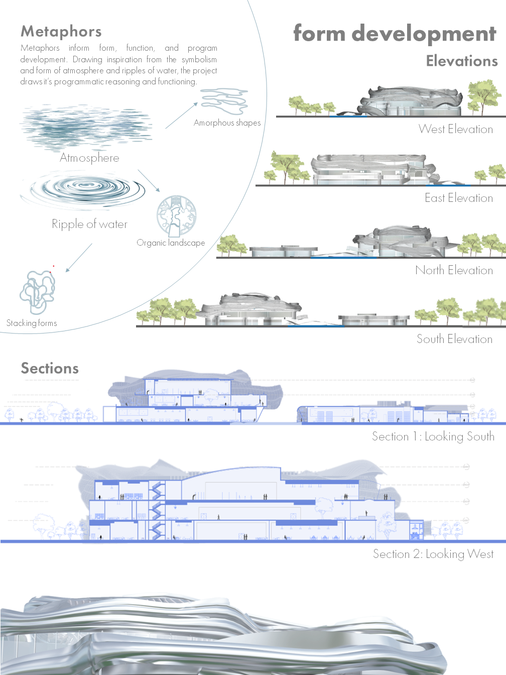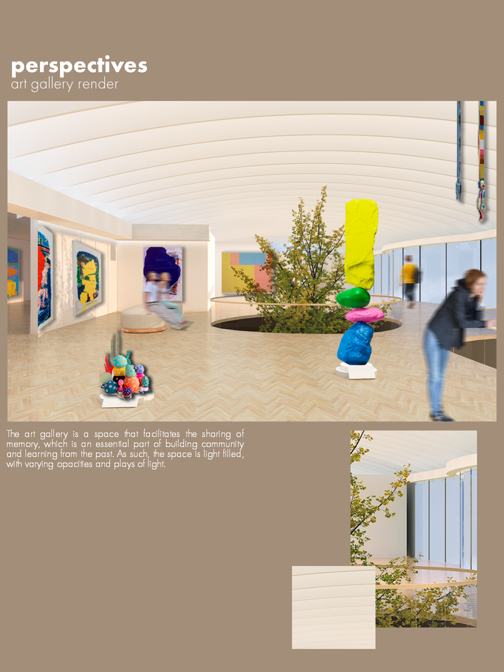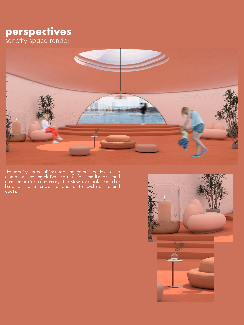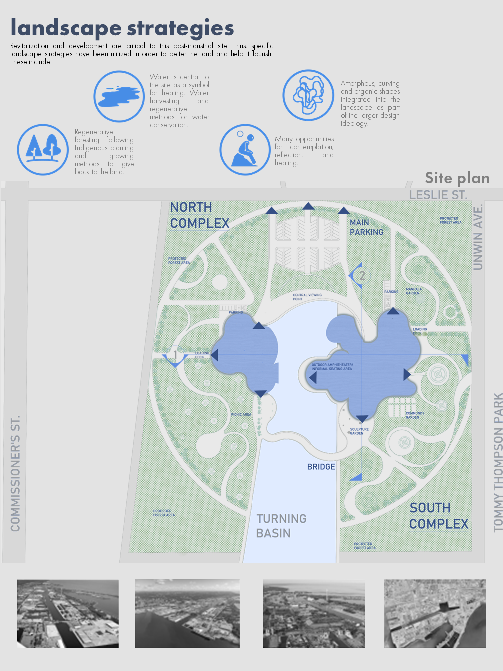 ThesisCommunity empathy, historical awareness and social responsibility can be expanded, enhanced, and supported by the use of commemorative projects in spatial design. ProjectMy project aims to achieve this through the creation of a community center that offers placemaking and memory creation, commemoration and preservation opportunities. It does this through a range of landscape, archiving, studio and gallery programs, while contributing to the City's Port Lands Revitalization project. Design ObjectivesMy design objectives for this project include: - Providing spiritual (but religious-neutral) grounds for community bonding - Offering a variety of options for people to preserve and look back on both everyday and larger personal and socio-historic events - Fostering empathy and social awareness for events of the past and offering opportunities to learn from micro and macro historiesCreating space for contemplation, reflection, nostalgia, and gathering