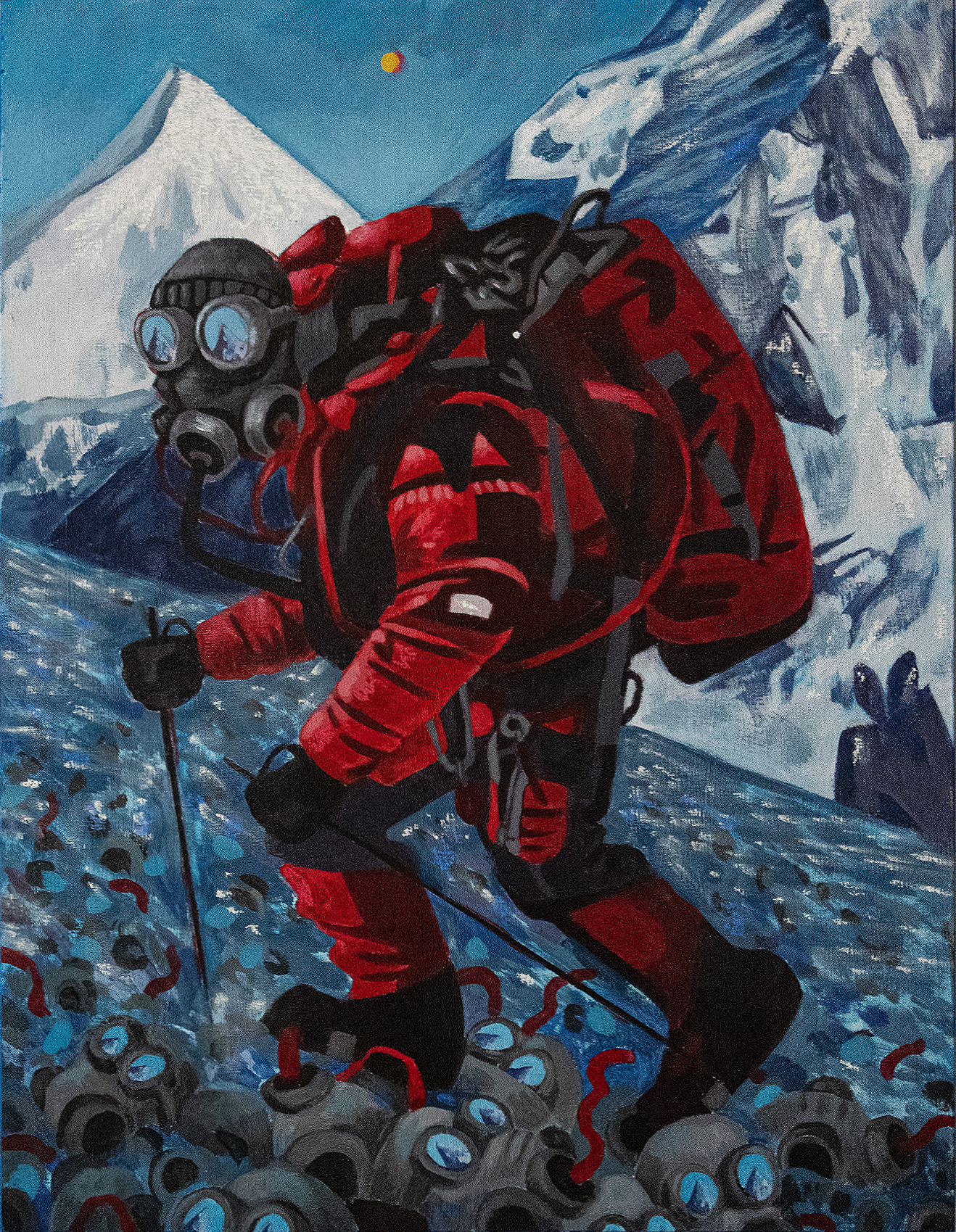 K2 is one of the deadliest mountains that many risk to summit every year. There have been countless deaths and lost items throughout many ventures. Temperature and nostalgia display the contrast of those buried and lost items up a dangerous mountain using gas tanks to display the unsuccessful climber amongst the fallen.