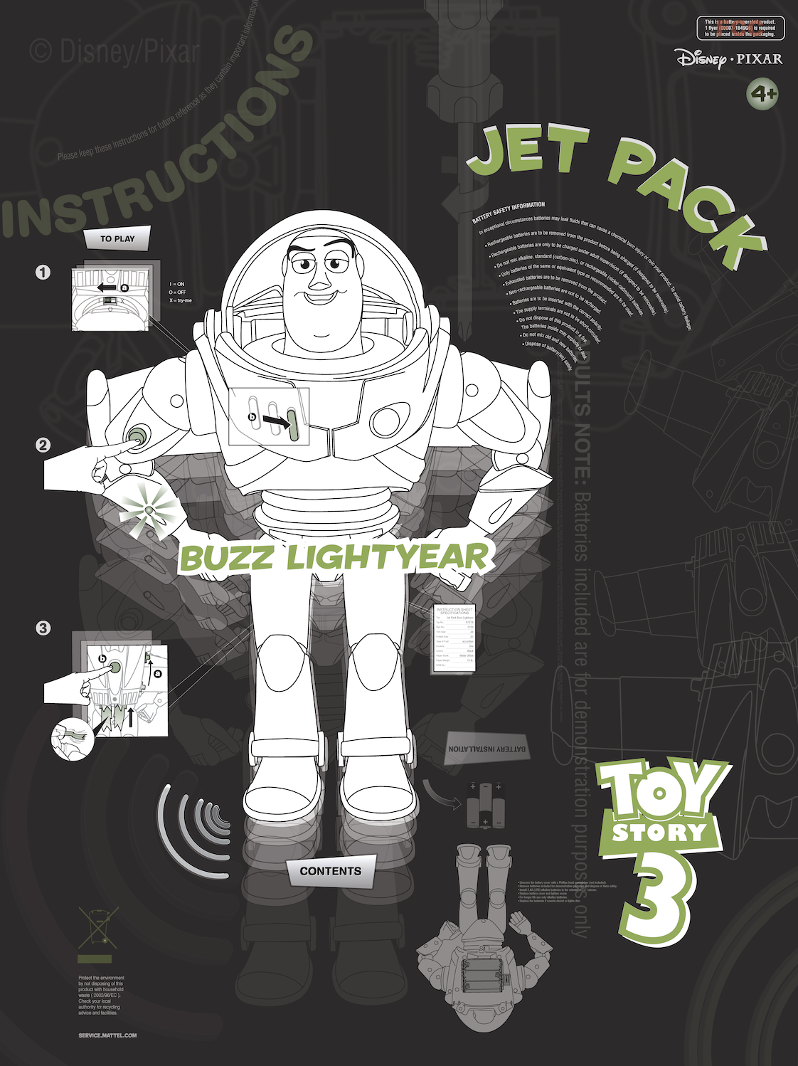 “The redesigned instruction manual for Jet Pack Buzz Lightyear aims to break free from the conventional design of instruction manuals and create an engaging and interactive experience for users. By utilizing a visually appealing layout and incorporating the unique features of the toy, the manual will capture the viewer's interest and encourage participation in reading it. The manual will provide step-by-step instructions on setting up and using the toy, with a focus on the special features of Buzz Lightyear's jet pack. Through this innovative design, users will be able to fully immerse themselves in the world of Buzz Lightyear and experience the excitement of the toy.”