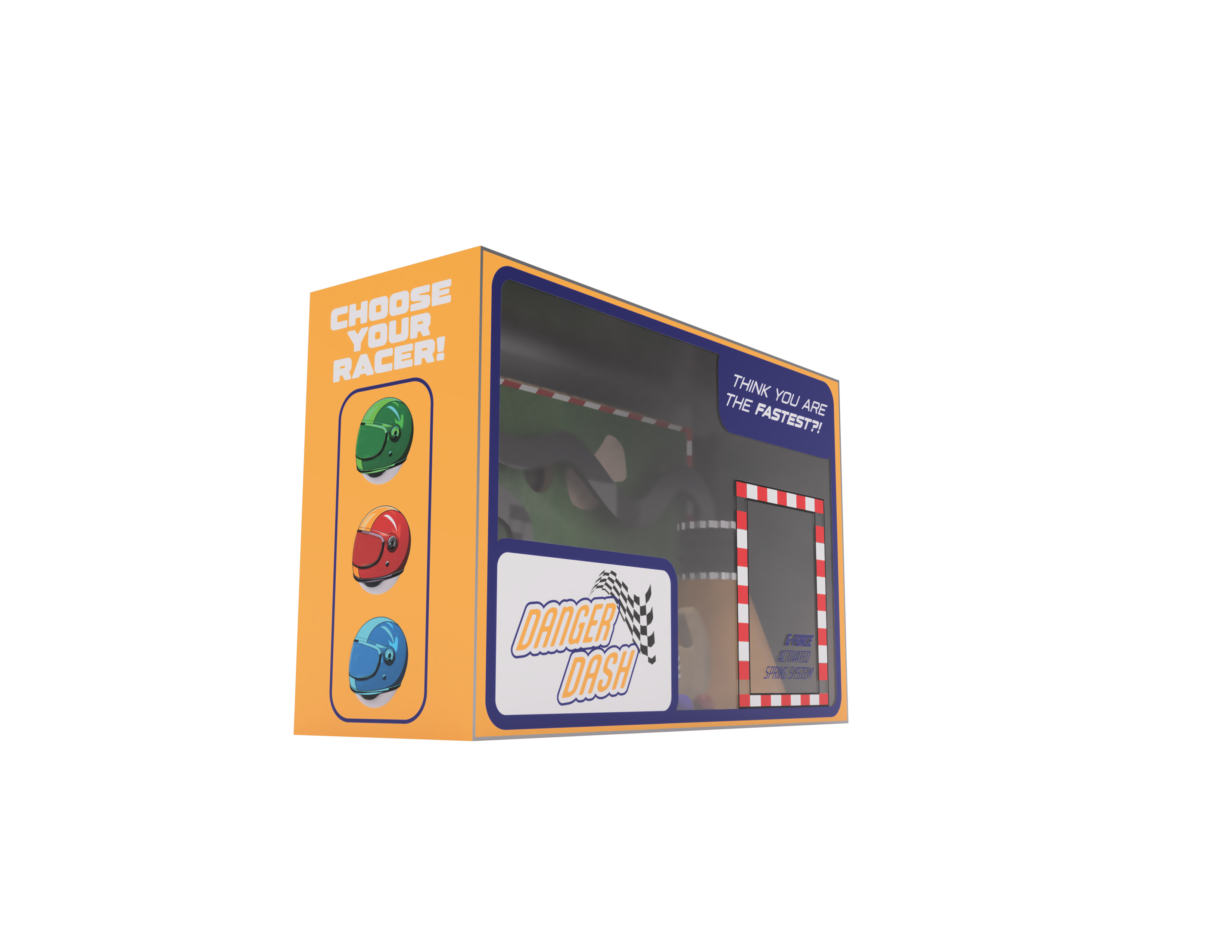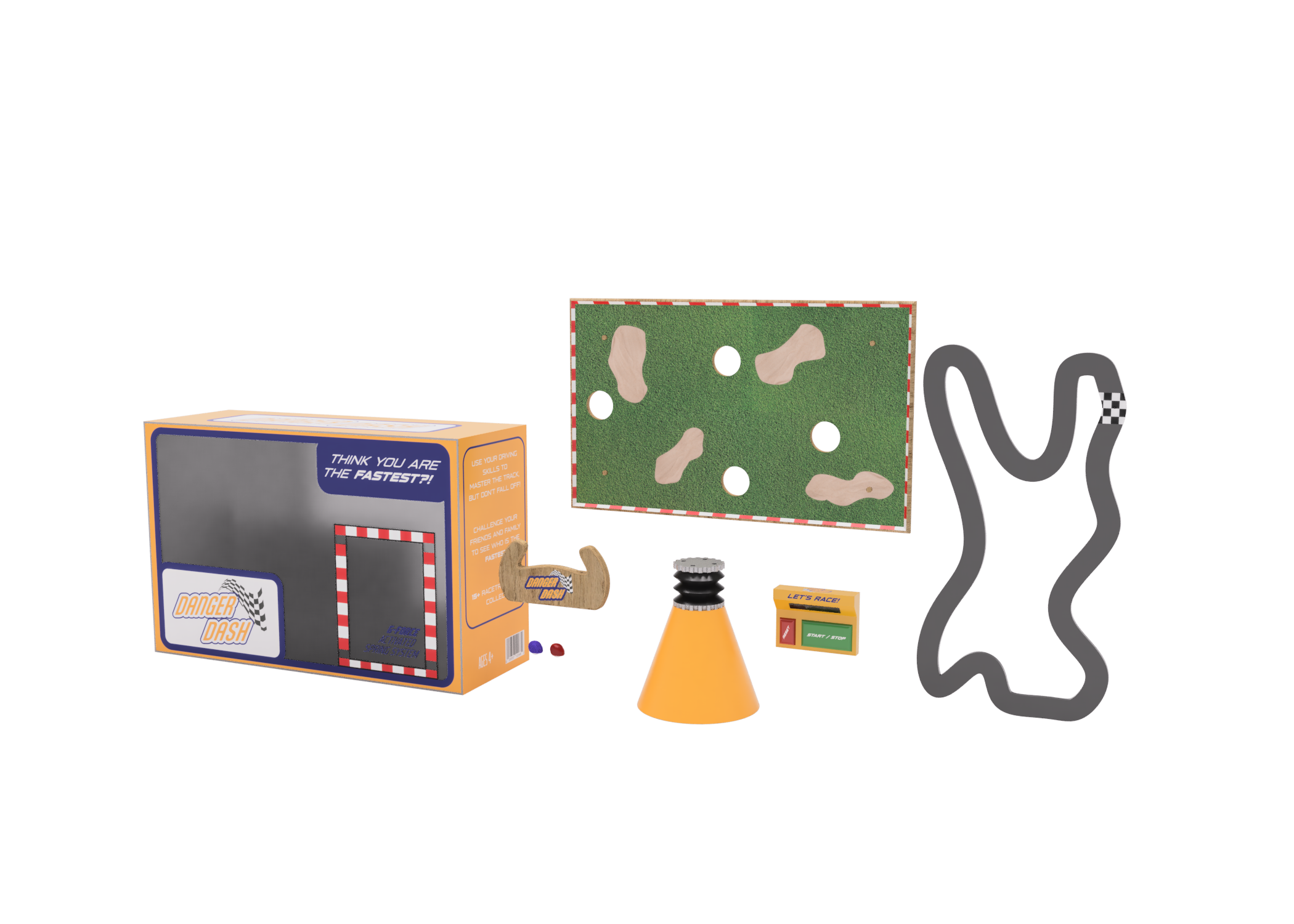 A children's toy design made for fast action, concentration, and hours and hours of fun. With a project brief of creating an activity toy that connects with children (boys aged 5-7). Inspired by my own connection to racing, and the recent surge in racing popularity, I choose this as a theme. I created a game that is hands on and allows for fun competition, as children at that age learn through competition. I wanted a toy that could be played without batteries and would be a staple in the home for generations. Even though it is built for 5-7 year olds, adults could enjoy as well. The toy action is about getting the ball (racer) around the interchange track in the quickest time. While the user controls it by a spring loaded steering wheel connected to the game board. With endless circuit layouts, the toy can be forever upgraded. The project consisted of the concept, naming, branding, packaging design, 3d modelling, technical packaging, physical prototyping, and storyboarding a commercial sizzle reel.