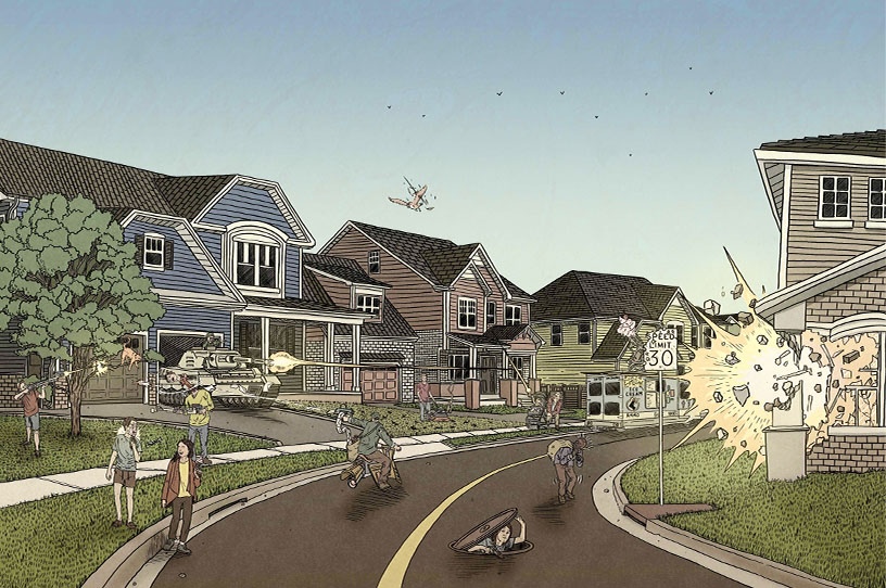 This Illustration Critiques the Worshipping of Unregulated Weaponry...