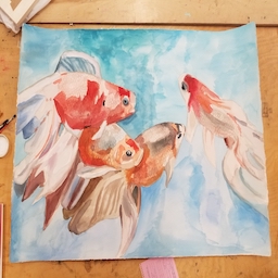 Painting of my sculptural work from watercolor painting course at OCAD.