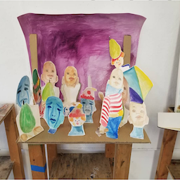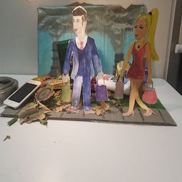 Oil Painting and Cardboard Paper illustration of my two figures causing environmental pollution