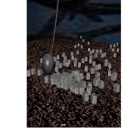 An animation video based on my own nightmares. The video was done using 3D modeling software called "Maya" and it shows an image of a giant collision ball smashing into the blocks of stone bricks on a dark night.