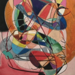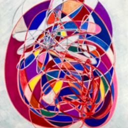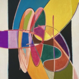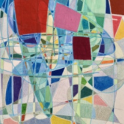 “It begins with the inspiration I find in a word or phrase. I use my handwriting and the edge of the line as the foundation for each painting. From there I add colours and pattern that I or you, might...” [More]