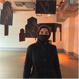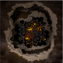 My installation consists of a geometric design that is laser cut into black acrylic. In front of this piece there are two pieces of drywall with large holes bashed out of them, with one hanging in front of the other. There is no light in the room... More