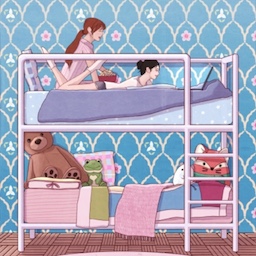 Ddi At is the pure Korean expression meaning "the friendship and relationship between siblings." This piece shows two sisters in their shared childhood bedroom and bunkbed. The two levels of the bunk show their personality and style differences,... More