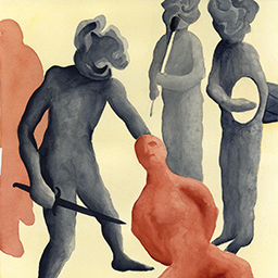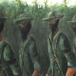 El Calvario (Calvary) is a series of three paintings that portray the different stages of training of children for militias. The characters are elongated shapes, rendered repetitively. The atmosphere is mainly covered, with dark green and red... More