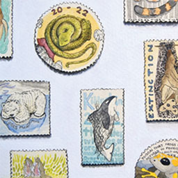 "Postcard of Potential Stamps" is a collection of stamps representing predatory species that have been vilified and are now in danger of extinction.